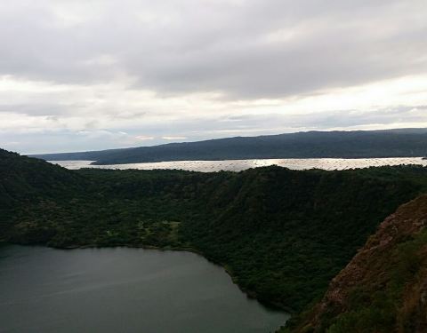传说这里是世界上最大的一个火山,远远看去确实挺漂亮,也挺壮观的一片,都是绿幽幽的,而且它的流线特别漂亮,中间还有一个湖水。
