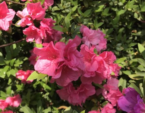 四月赶上开办杜鹃花展,花品琳琅满目,特别漂亮。杜鹃花色不仅有红,黄白粉紫,娇艳已成百态。园中色彩斑斓的杜鹃花令人流连忘返,值得一游。