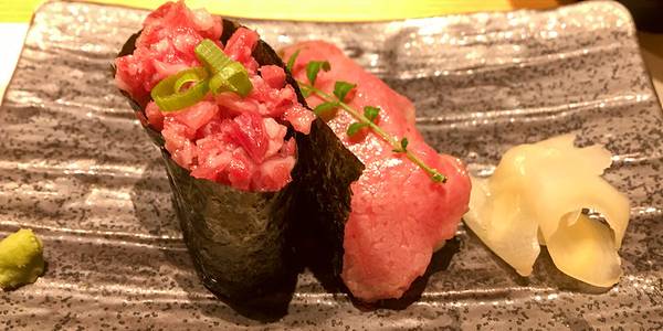 让酒店前台帮忙预定,但是说8点前得吃完。我们血拼完,7点前赶到了。 环境很好,都是包房,非常幽静。 点菜的时候非常犹豫,点了贵一点的套餐,再点了些其他比较贵的和牛(不知道怎么点的时候,选贵的总没错,哈...让酒店前台帮忙预定,但是说8点前得吃完。我们血拼完,7点前赶到了。 环境很好,都是包房,非常幽静。 点菜的时候非常犹豫,点了贵一点的套餐,再点了些其他比较贵的和牛(不知道怎么点的时候,选贵的总没错,哈)。 由于店家觉得我们时间紧张,全程都是服务员帮我们烤的,我们就一个劲地吃吃吃。 先上来的是鸡蛋拌生牛肉,一入口就惊艳了,好的食材真是口感味道都绝赞。接着各种烤和牛、和牛刺身,等等,每一个都是精品!别看每一盘的量都不大,但是最后吃到超级饱!2个人点一个套餐,再单点2-3盘足够足够了。 服务超级好,吃完去洗手间出来,还送上热毛巾,还开好电梯鞠躬送我们,菜品服务都没的说。