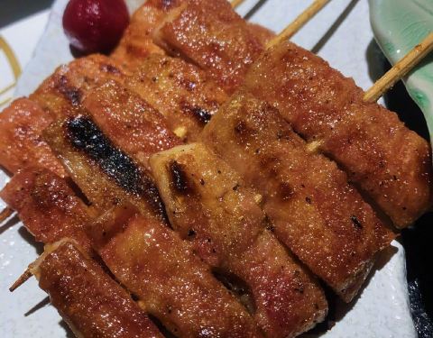 店面极不起眼,看上去甚至有些落魄,外面除了一个灯牌以外,没有任何装饰,一直犹豫不敢进去,如果错了,我要不要出来,踌躇间我推门而入,一眼看到正在烧烤的老太,定下心来。没错!就是这家,此老太就是招牌啊!店内灯光昏暗,泛着微黄的光,老大就坐在U形桌子里侧,我们去的时候有三组人,除了一个女孩自己一人以外,另外两组一看就是本地人,在轻声边吃边聊。我们正在研究菜单的时候,旁边那个女孩说话了,告诉我们那是烤鲫鱼,后来实践证明烤鱼是最好吃的,好吃到虽然已经饱了,LG还想再加一个烤秋刀鱼,被我制止了。于是乎,他问我“咱从阿寒湖回来的时候几点?” 这是要做甚么?难不成还打算再来吃一次!又于是乎,烤秋刀鱼就成了LG此行永远的牵挂。我甚至在想他晚上睡觉是不是还在念叨着他的烤秋刀鱼呢。Tips:1)炉端烧起源于仙台,师傅只传了三个徒弟,其中一位在钏路,没错,就是这位老太太,只有她还沿用师傅的店名,甚至菜单都没有改。可以说,这家是炉端烧的钏路始祖了 2)菜单没有价格,所以到现在也不知道单价 3)推荐烤鱼,烤蘑菇,烤土豆,烤芦笋