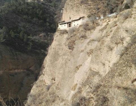 木梯寺就修建在直立岩壁半腰,那里树木郁郁葱葱,与周围的土山与众不同,一方世外之地。