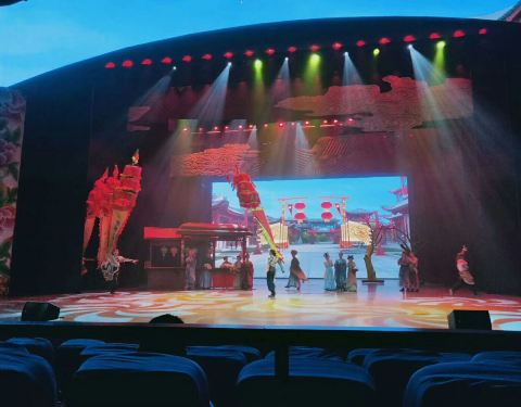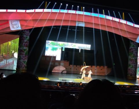 汴梁一梦剧场是清明山河图景区里的一个景点,《汴梁一梦》是大型古彩戏法,是横店影视城的经典演艺节目。 中午去观赏可谓饕餮盛宴,节目多,个个身怀绝技,真的看得目不暇接,剧场里面也有食物和饮料可供选择。