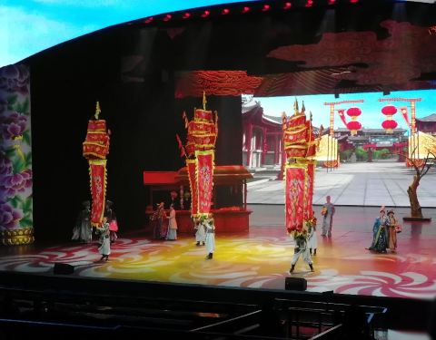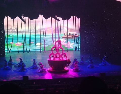 导演把清明上河图和杂技融合在一起,展现给观众一场非常好看的演出。舞台会上升下降,还会旋转,很有心意。演员空中飞舞,扣人心弦,值得夸奖。
