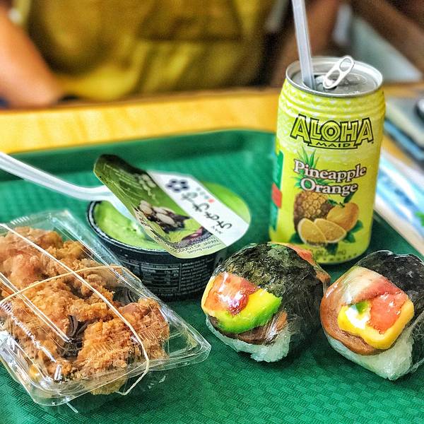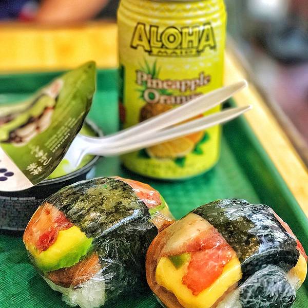 好像慵懒的浪费掉上午的时光,才是海岛度假该有的节奏,于是这一天中午时分才走出酒店,去寻摸spam来吃。spam是一种午餐肉,夏威夷的日本移民发明了把这种午餐肉跟米饭一起来吃的午餐肉饭团,成了夏威夷的著名美...好像慵懒的浪费掉上午的时光,才是海岛度假该有的节奏,于是这一天中午时分才走出酒店,去寻摸spam来吃。spam是一种午餐肉,夏威夷的日本移民发明了把这种午餐肉跟米饭一起来吃的午餐肉饭团,成了夏威夷的著名美食。离酒店不远处的拐角就有一家十分火爆的日本小店——Musubi Cafe。点了豪华饭团,包括了培根,午餐肉,蛋饼,牛油果,一颗饭团大概手掌大小,超级美味又饱腹。