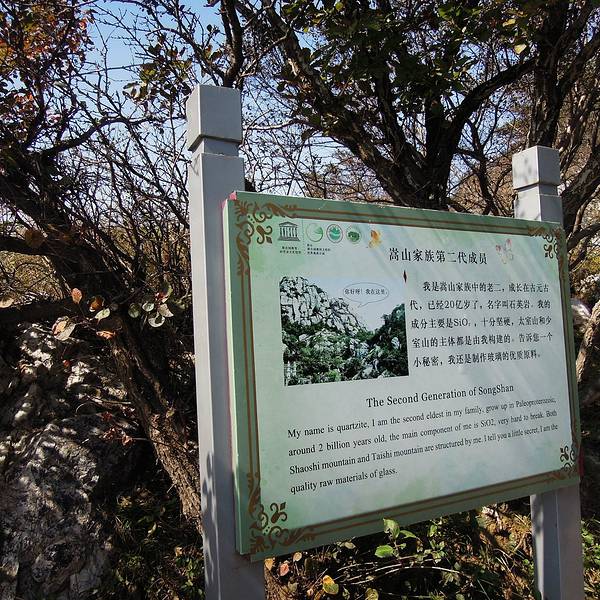 三皇口是嵩阳景区一处山口,再往前走是峻极峰。嵩山家族第二代成员石英岩