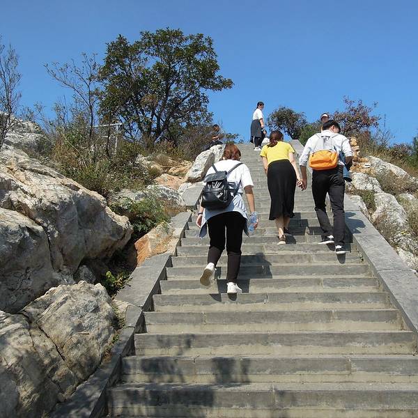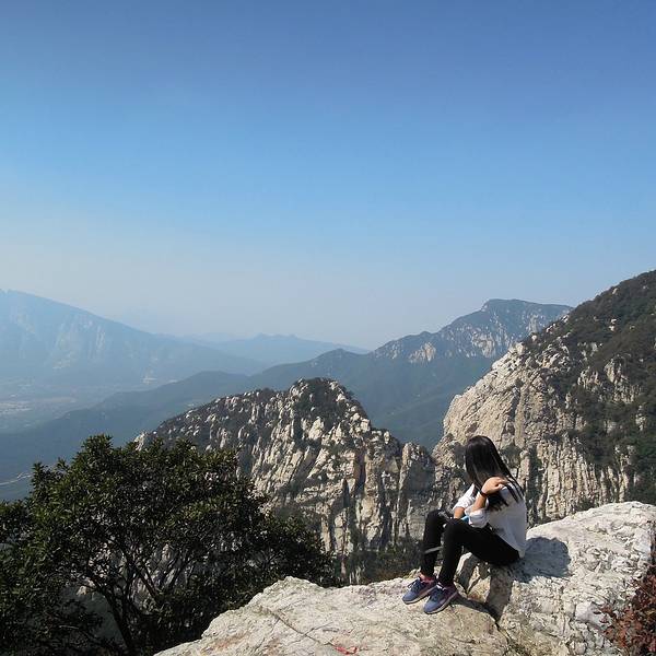 三皇口是嵩阳景区一处山口,再往前走是峻极峰。游客坐在石头上面观景,石头下面就是山崖。嵩山家族第二代成员石英岩
