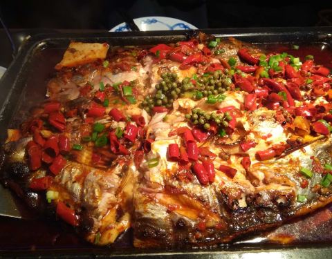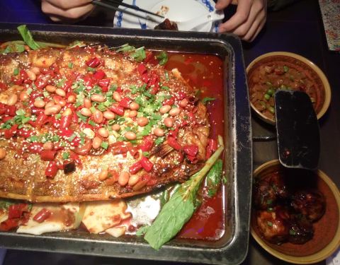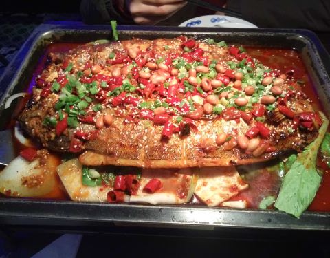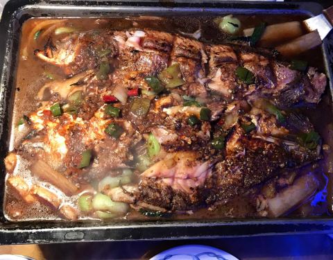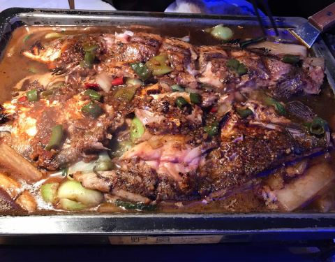 他家在 皇城恒隆广场里边,非常好找,环境也不错。鱼的种类也很全,我很喜欢蒜香的,很香。还有他家的羊排也很好吃。还有大麦茶。