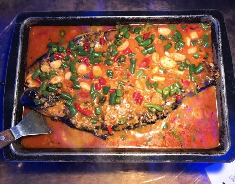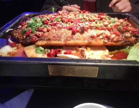恒隆里两家吃鱼的店紧挨着 想带父母吃浓香烤鱼就来了这一家 菜单非常清楚的画出可选鱼的形状 标注了净重 有19种口味可以选择(太难取舍了 都好吃) 这次选了店家推荐 不辣的 蒜香味 鱼选择了湄公鱼 肉厚刺少 ...