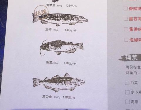 - 菜单非常清楚的画出可选鱼的形状 标注了净重 有19种口味可以选择。太难取舍了 都好吃)这次选了...