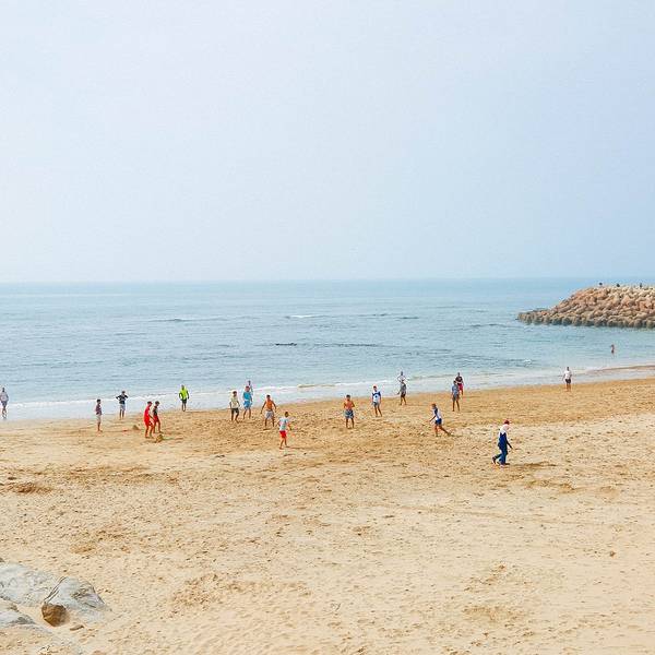 只是这样拍打着岸边,日复一日一群当地的孩子在沙滩上踢足球