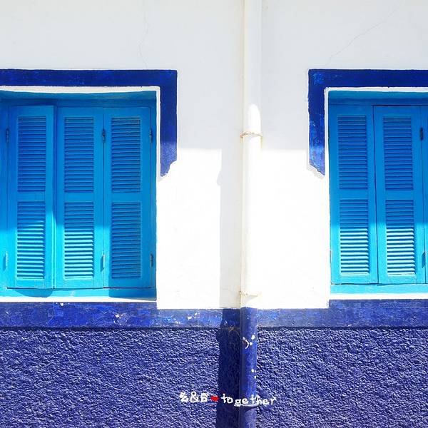 好喜欢这座小城白蓝相间的窗