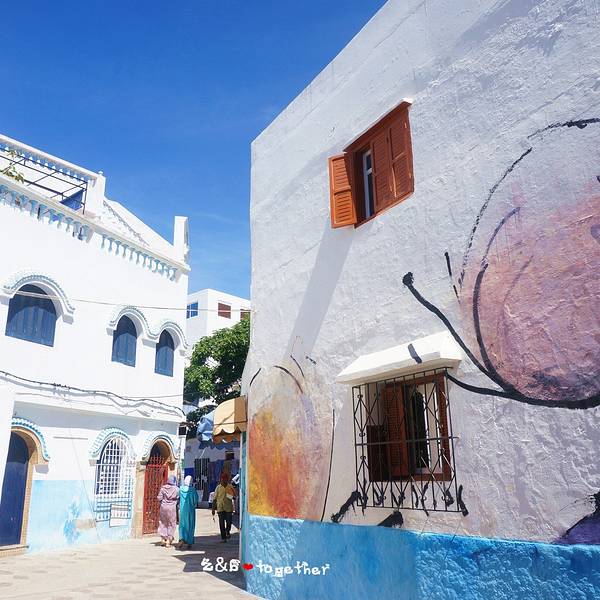 看着向岸边“刷刷”拍打的海浪,终于有种置身世界另一端的感觉。一路吹着海风,我已经晒得跟当地人无异了。艾西拉艾西拉小镇 艾西拉 :被称为涂鸦小镇,往年墙上到处都是来自是世界各地艺术家的杰作,我们到的时候正好是有很大一部分被刷白了需要重新喷涂,没看到那么斑斓的小镇还是有点小遗憾。不过这里受到 地中海 文化的影响,整个城也是蓝蓝白白的非常清新,偶然间看到角落里的一个涂鸦,就像触到了一个小美好,会心一笑。艾西拉 展开
