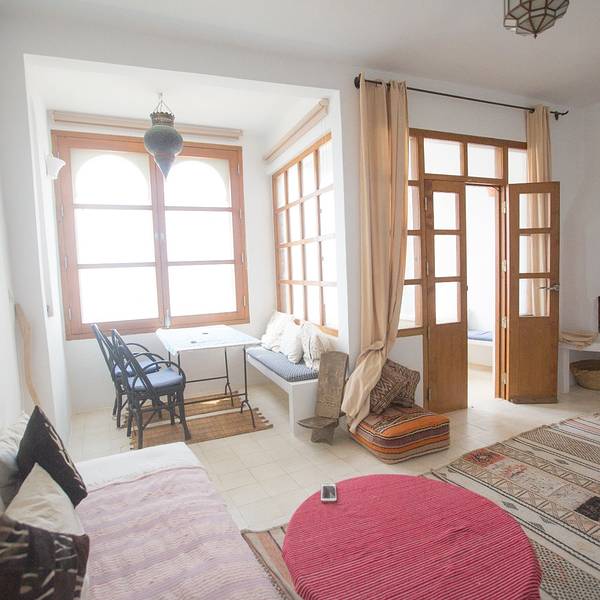 我们上午就到了,结果房东却不让我们入住,就连行李都不让我们存放,没办法我们只好找个地方吃饭打牌一...在丹吉尔包车一个小时到艾西拉;艾西拉是一个涂鸦小镇,紧挨着海边,也是很小很小,但是很干净,人也不多。