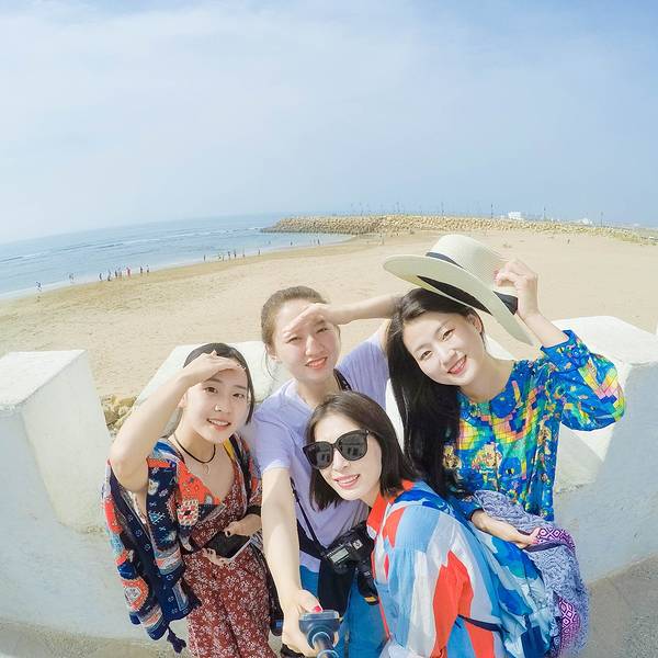 闻着海的气息禁不住有点沉醉,海水非常的蓝,看着远方,身心已经放空由于前一天的天气非常的糟糕,所以没有拍照而是直接抵达民宿入住,然后就大家洗刷刷做饭吃了。我们也遇到了本次旅行中第二次要求给小费的情况。到了艾西拉后是民宿这家主人的侄子来接我们,帮我们带到民宿之后顺...由于前一天的天气非常的糟糕,所以没有拍照而是直接抵达民宿入住,然后就大家洗刷刷做饭吃了。我们也遇到了本次旅行中第二次要求给小费的情况。到了艾西拉后是民宿这家主人的侄子来接我们,帮我们带到民宿之后顺便去买了点酒,就开始希望让我们请他当导游去逛一圈,我们其实很累就拒绝了。然后他就以等我们等了两个小时的理由,希望我们给他点小费,好吧同住一个屋檐下也认了,给了50打发……还说,他老妈的库斯库斯很好吃,希望我们晚上能去尝尝,呵呵哒去吃才有鬼呢小楼一夜听风雨,半夜竟然下起了雨,等到眼睛一睁开,走到天顶露台才发现天气已经转好,温暖的阳光照在眼前的小镇,让人倍感温馨艾西拉紧靠大西洋,因此我猜这里肯定有丰富的海岸线,就打算为今晚的大西洋日落踩点,果然到了海边各种丰富的前景让我很是满意,而当地人在礁石上捡着什么东西走在大西洋的岸边,闻着海的气息禁不住有点沉醉,海水非常的蓝,虽然没达到帕劳那种的七色海,但这里的蓝和舍夫沙万的蓝非常的相近听着海浪的拍岸声,凝视着远方美洲大陆的方向,那又是另一个未知的世界我站在礁石上,看着远方,身心已经放空,此时的我并没有想太多,只想好好的感受,哪天回忆的时候,还能记得这份蓝就行了一只傲娇的喵星人,躺在沙滩上慵懒的晒着太阳,贵气的眼神盯着我们不远处一个青年,突然纵身一跃扑通跳进了水里,游泳也许对于当地人而言是必备技能吧踩点完毕后,就要好好逛逛这座大西洋岸边的袖珍的小城了,虽然这里不是世界遗产,也没有众多的景点和迷宫般的老城区,但这里的名气却与索维拉和阿尔加迪达这样的世遗城市相比,却毫不逊色。这是因为它以悠久的历史和蓝白相间的地中海建筑风格成为著名的旅游胜地,而这里独特的壁画涂鸦艺术更是吸引世界各地的游客前来参观。小镇始建于15世纪。1978年,在两位当地艺术家的倡导下,来自美国、日本等地的11名艺术家在这座城市的墙壁上绘制壁画。这成为一种艺术传统延续至今,艾西拉也因此被誉为大西洋边的“艺术之城”每一面墙壁上都画满了精致的涂鸦,值得你去探寻,而这位真会做生意的画家,为了推销他的画真的是使出浑身解数,好在我们也买账了,确实画的有意思即使是慢慢地步行,走遍小城也用不了多久。但吸引万千游客来此的,正是这些民居的外墙上,丰富的图案艳丽的色彩,彷佛像宝藏一样的等待着每个人的发现狭窄的街道里,几乎家家户户的外墙上都画满了彩绘,其水准之高让人吃惊,这种高水平大规模的还是第一次看到。白墙黑窗配合以鲜艳的花朵,极简的风格深入我心,这的太美了,我禁不住赞叹整个小镇彩绘与整个建筑巧妙结合,门窗都成了壁画的装饰。风格各异,但大多色彩艳丽。艾西拉小镇的地图连地面的石头上,也都被涂鸦了精致的图案,这个涂鸦小镇怎能不让人喜爱?而这时,一位画手绘的老太太,吸引了月月的目光。禁不住诱惑过把瘾,结果……后面悲剧了。老太太画得歪歪倒倒的也就罢了,由于两只手用的不一样的颜色,一只手用的海娜粉,颜色很淡,画完感觉都看不出来,掉色后更是像皱巴巴的皮肤她已经很心塞了。另一只手用的黑色的不知名的颜料,加上老太太拙劣的技术那画出来就是一坨一坨的还擦不掉。她就这么一路心塞到回家,终于等到所有颜色都掉光了,然后她就过敏了,还进了医院............所以,手绘有风险,看到是老太太更要谨慎。艾西拉游客极少,太安静、太不真实了,以致于整理照片的时候我才确信,它的美丽并非虚构而是真实存在的这也让我彻底理解,这里之所以会成为众多游记的推荐理由,完全是有实实在在的资本的而我们能做的就是,坐在这个观景台上静静地享受着海风,阳光和空气发下两个妹子,然后赶紧合个影好了,说实话老到摩洛哥的这么多天,真的没意义上的好好拍过照,而艾西拉给了我一次好好拍的机会。睡了个午觉后,算好时间在此回到早上的海岸时,才发现此时已经涨潮了,汹涌的海水已经把早上的礁石全部淹没而我眼前的礁石上赫然还有5个青年,在悠闲的垂钓,彷佛已经被海水层层包围的状况他们毫不在意远处,惊涛骇浪一波又一波,很多当地人都拿着超长的钓竿在那捕鱼,站在汹涌的潮水中一动也不动 展开