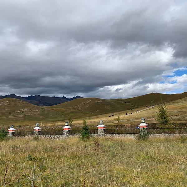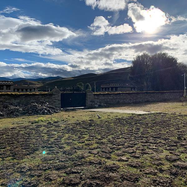 尊胜白塔旁边的,远处的草甸多美牦牛在草甸自由自在,有牛就美丽很多稻城县当地人家。矮围墙上的草看着很温柔祥和浓厚的云挡住大多数阳光,影子界限清晰秋樱?各种各样,说不上漂亮,但是点缀的很合适
