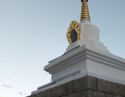 道孚白塔郎吉曲登,是藏区最高的佛塔。郎吉曲登的意思是金刚宝座佛塔,汉语称之为“尊胜白塔”