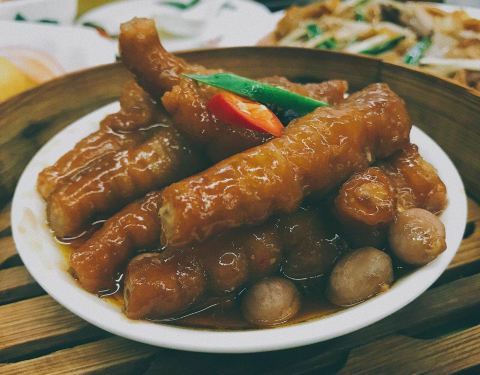 经典的港式茶点,凤爪很软糯入味 虫草上汤鲜竹卷,看着颜值不高,可一尝才知道腐皮卷里包裹了相当丰...