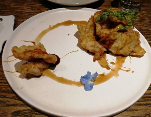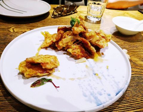 一家精致的辽菜馆,又有些融合川菜,环境很精致,服务也很细致。点了锅包肉,挂糊比较薄,跟哈尔滨的不一样,口感偏干,算酥脆,摆盘比较精致。秋天的茄子很别致,艺术范儿的菜名,茄子加了面炸过也是外酥里嫩的...