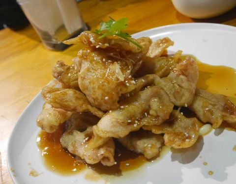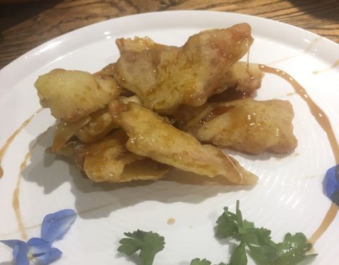 点了锅包肉,挂糊比较薄,跟哈尔滨的不一样,口感偏干,算酥脆,摆盘比较精致