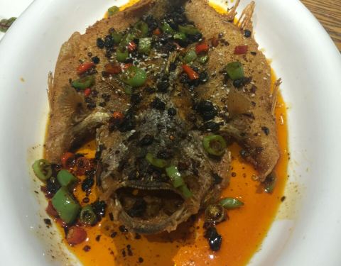 在万豪酒店旁的奉天小馆,环境比较清新,周末人比较多,不过还是比较快,等待时间不长。两个人点了三个菜,雪绵豆沙包,包子皮比较绵软,但是豆沙不够细腻;沸腾水煮龙利鱼,微辣,鱼比较新鲜,味道不错;那年秋天的茄子,比较新奇,一点吃不出茄子的味道。总体来说不错,不是特别吵。