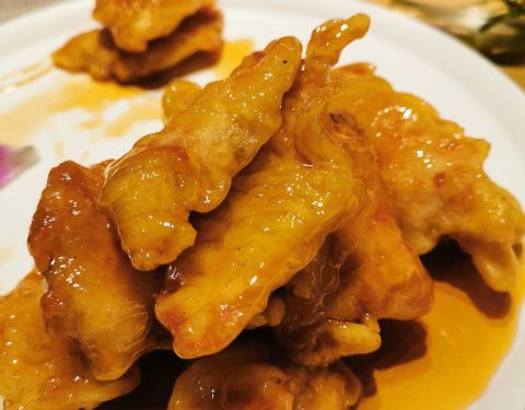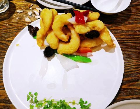- 点了锅包肉,挂糊比较薄,跟哈尔滨的不一样,口感偏干,算酥脆,摆盘比较精致
