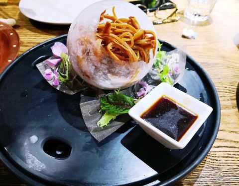 他家最棒的就是菜单设计的好看,上来后样子并没有那么惊喜。点的几个菜都是榜上有名的。味道真的一般,我们四个人吃了300多元的菜都剩下了不少,而且一点没有打包的欲望,不过300多比我预计的便宜很多