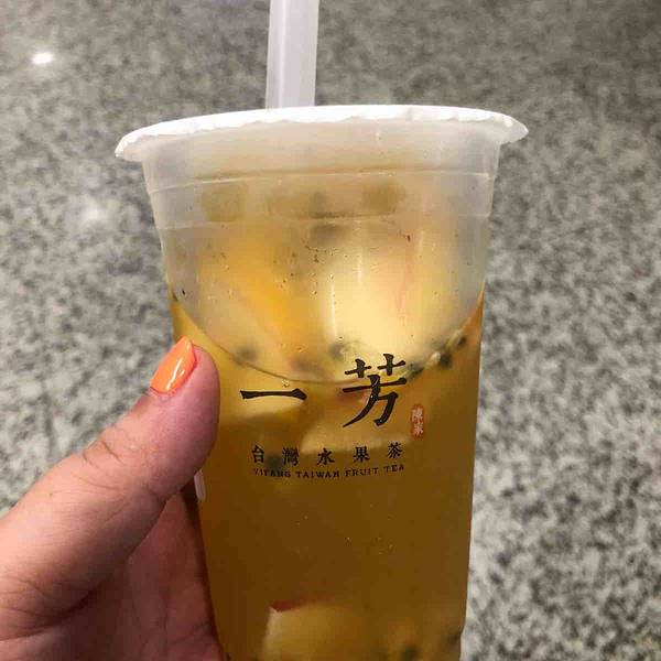 我喜欢这款茶里面添加了百香果所带出的酸爽与颗粒口感。招牌:一芳水果茶