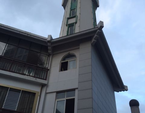在金马碧鸡坊旁,面对广场,背靠云南省第一人民医院!现在基本上是回民美食城,进去就是吃东西的!绿色的圆顶,白色墙面!不值得花时间游览!