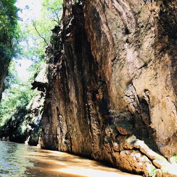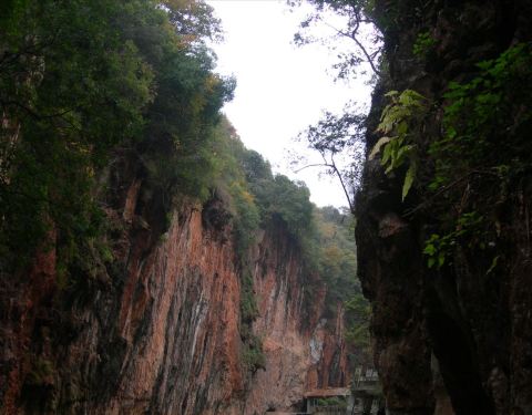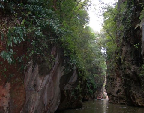 ...的,感觉水路两面都是山石,山石上生长了许多树木,旁边是轰隆隆的流水冲击山石的巨大响声,挺险峻的是照片这个景点吗?是乘船游览看到的,感觉水路两面都是山石,山石上生长了许多树木,旁边是轰隆隆的流水冲击山石的巨大响声,挺险峻的。