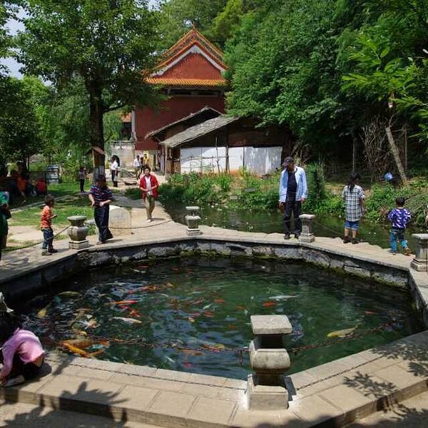 来这里只可以自驾前往,车可以停在门口,有人收费管理。或在昆明市内可乘23、K1、57、79、61、67、59、92、96路公交车到北部金星客运站,再转乘白邑班车即可到达。整个园区风景宜人,最为出名的就是黑龙潭原为龙宫,经过年代的变迁渐渐演变为佛道合一之寺院。建于明弘治元年经过了很多年,后来又修建过,这里依然是有山有水的美景之地,由于水资源的优质,这里的植物生长茂盛,就连很少见的海菜花在这里也是朵朵白色小花绽放在水面上,偶见几条花色锦鲤愉悦穿梭在其中,绿色的海草在水中随波飘飘。手拿鱼食可以喂食这里的锦鲤,它们会成群的游向你,来抢吃的,池中的水清澈见底,都不知道是有多深的水可以容纳那么多的鱼儿。偶尔可以见到蓝色的小蜻蜓在水边飞舞。有的地方又是水围绕着亭子周围,坐在亭子里乘凉还可以喂鱼,完全不会觉得热。