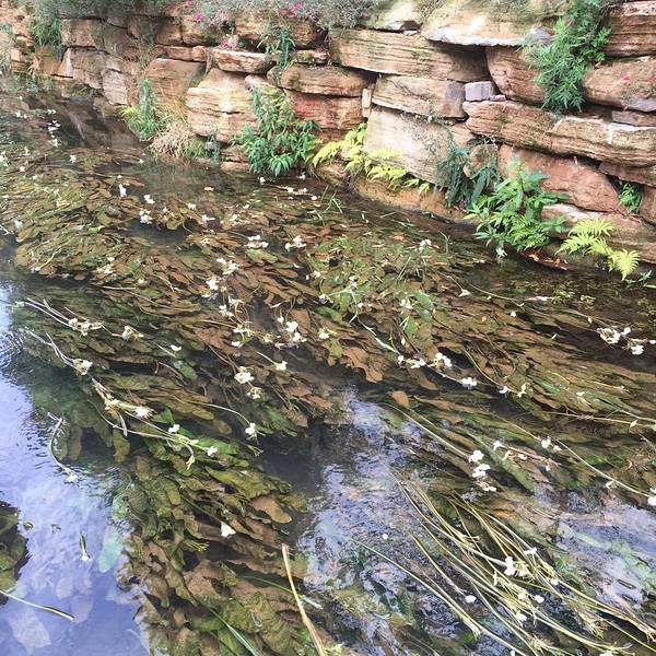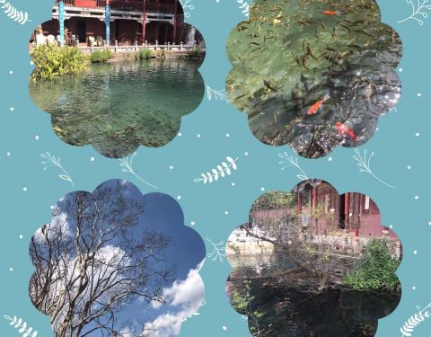 就连很少见的海菜花在这里也是朵朵白色小花绽放在水面上,偶见几条花色锦鲤愉悦穿梭在其中,绿色的海...
