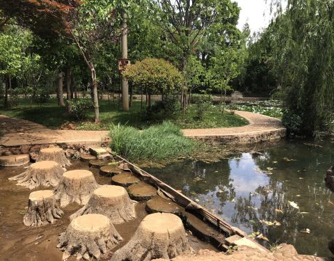 里面有各种花,茶花,桃花,等等,还有一个湖,以及一个寺庙,我觉得最好玩的是那个小型的游乐场,有秋千,有跷跷板,总之还是不错的,