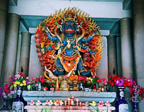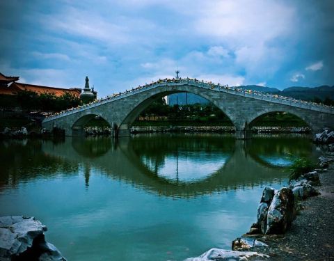 还在建,宫殿很宏伟,就在宝峰镇上,交通比较方便。