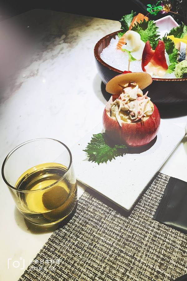 来到宁波海鲜还是要尝尝的吧,后来想想一个人去吃的话分量有点太多,还是选日料吧,毕竟精致一点。在网上搜了一下,附件人气最高的一家。 去了之后才知道,是半自助式的,有点吵,不是很舒服的感觉。不想要自助的,就选择了单点。这个店的特色就是位于江边,可以看到江景,可惜临时定的 位置,只能坐在里面。第一次一个人这样吃饭,再加上旁边都是一对一对的小情侣,一开始真的有点不太习惯。坐了一会之后,突然觉得很自在,边看手机,边吃东西,完全沉浸在自己的世界里,也是一种难得的享受和体验。也就是这个时候我突然觉得,一个人也挺好的,并没有想象中那么孤单那么可怜。让小哥哥给我推荐饮品,估计他是不了解北方女汉子的酒量吧,我点这个梅子酒的时候,提醒了我好几遍是纯酒,度数还挺高的。 突然脑补了一下,自己是不是一个悲催的女青年,要出来买醉,哈哈哈。最终,成功把人均消费200多的店,吃到了人均360,隐约听见隔壁桌两个人才吃了300多,确实吃的有点多了,哈哈哈。
