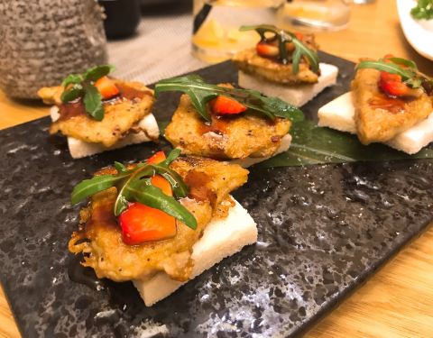 如果说这场特别的晚餐,是提前的圣诞美宴,那么给我的是一整晚的惊喜 【梅子醋饮】 自创的特色饮品,入口酸爽,回味微甜,作为开胃酒或佐餐饮品都超级棒,个人非常喜欢,于是续了一大杯 【芝士豆腐】 【鸟巢蛋】 惊艳始于餐前小食,芝士豆腐柔和细腻的口感,满嘴都是奶和芝士的香融,大爱 鹌鹑蛋做成溏心,绝对是掐着秒表计时,腌制的味道也很棒 【自制土豆泥】 内容敲丰富的土豆泥,自己动手鼓捣增添一分乐趣 【火焰鲍鱼】 【焗烤蟹肉牛油果】 加威士忌点燃,蟹肉捣碎,与牛油果泥加芝士焗,鲜香润口,喜欢这道料理,鲍鱼也很嫩 【清酒鹅肝】 清酒腌泽的鹅肝,垫着红酒雪梨片,鹅肝的腻味已经感觉不到,只有入口即化的绝妙口感 【鹅肝菌菇牛排】 另一款鹅肝料理也很赞 【刺身拼盘】 如果你以为重点是趴在上面的鳌虾,那就错了,特地赶来的台湾主厨,介绍了鱼生的正确打开方式,体验了一把“飞起来”的感觉,至于怎么吃出这种感觉,留待你亲自去体验咯 【桌边秀三色寿司】 魔都点击率很高,现场制作寿司的仪式感,这位国际寿司冠军厨师,可以将寿司米的分量误差控制在1g 【炉端烧甘鲷】 挺喜欢炉端烧,皮脆肉嫩,烤的也不干柴,除了盐,不加佐料保证了鱼肉的自然风味 【岩烧和牛】 和牛在200度的岩石上欢腾变色,几秒钟的高温滋烫使得肉质柔嫩,不输专业日式烤肉店 【松茸鲜牛肉汤】 很喜欢的一道汤品,用汤的温度将牛肉片烫熟,松茸使得原本鲜美的汤更上一层楼 【黄金南瓜酥】 天妇罗的做法,面衣和炸制竟也做的不错 【石板厚切牛舌】 【海参小米粥】 菜品太多,无奈胃只有一个 【鲜乳酪】 超爱这款甜品,请给我来一打 原本并不感冒的日料自助,着实给了我一个超大的Surprise