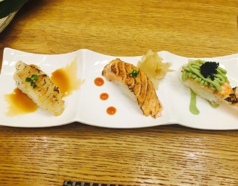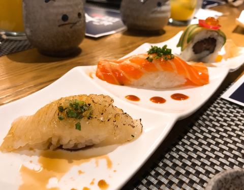 如果说这场特别的晚餐,是提前的圣诞美宴,那么给我的是一整晚的惊喜 【梅子醋饮】 自创的特色饮品,入口酸爽,回味微甜,作为开胃酒或佐餐饮品都超级棒,个人非常喜欢,于是续了一大杯 【芝士豆腐】 【鸟巢蛋】 ...如果说这场特别的晚餐,是提前的圣诞美宴,那么给我的是一整晚的惊喜 【梅子醋饮】 自创的特色饮品,入口酸爽,回味微甜,作为开胃酒或佐餐饮品都超级棒,个人非常喜欢,于是续了一大杯 【芝士豆腐】 【鸟巢蛋】 惊艳始于餐前小食,芝士豆腐柔和细腻的口感,满嘴都是奶和芝士的香融,大爱 鹌鹑蛋做成溏心,绝对是掐着秒表计时,腌制的味道也很棒 【自制土豆泥】 内容敲丰富的土豆泥,自己动手鼓捣增添一分乐趣 【火焰鲍鱼】 【焗烤蟹肉牛油果】 加威士忌点燃,蟹肉捣碎,与牛油果泥加芝士焗,鲜香润口,喜欢这道料理,鲍鱼也很嫩 【清酒鹅肝】 清酒腌泽的鹅肝,垫着红酒雪梨片,鹅肝的腻味已经感觉不到,只有入口即化的绝妙口感 【鹅肝菌菇牛排】 另一款鹅肝料理也很赞 【刺身拼盘】 如果你以为重点是趴在上面的鳌虾,那就错了,特地赶来的台湾主厨,介绍了鱼生的正确打开方式,体验了一把“飞起来”的感觉,至于怎么吃出这种感觉,留待你亲自去体验咯 【桌边秀三色寿司】 魔都点击率很高,现场制作寿司的仪式感,这位国际寿司冠军厨师,可以将寿司米的分量误差控制在1g 【炉端烧甘鲷】 挺喜欢炉端烧,皮脆肉嫩,烤的也不干柴,除了盐,不加佐料保证了鱼肉的自然风味 【岩烧和牛】 和牛在200度的岩石上欢腾变色,几秒钟的高温滋烫使得肉质柔嫩,不输专业日式烤肉店 【松茸鲜牛肉汤】 很喜欢的一道汤品,用汤的温度将牛肉片烫熟,松茸使得原本鲜美的汤更上一层楼 【黄金南瓜酥】 天妇罗的做法,面衣和炸制竟也做的不错 【石板厚切牛舌】 【海参小米粥】 菜品太多,无奈胃只有一个 【鲜乳酪】 超爱这款甜品,请给我来一打 原本并不感冒的日料自助,着实给了我一个超大的Surprise