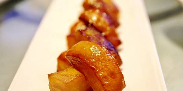 东钱湖华茂希尔顿中餐厅,冷菜8道+热菜都是主厨推荐。 冷菜中最突出的应该是紫醋芽姜三文鱼,摆盘应该给满分,色彩搭配非常协调,一看就是一份精致的美食,让人舍不得开动筷子吃它了。 我比较喜欢的还是笋,钟爱笋的我,真的超级喜欢吃,里面居然还有鱿鱼,这算是意外之喜了吧。 芝士酱烤南瓜,连皮都超级好吃哦,甜甜的,如果还有余温就更好了,可惜已经冷了;山药,居然做的和糯米糍一样,真的非常有心哦。 14道热菜,每一道都匠心独具,能在酒店中餐厅吃到这样的还是非常不错哒。 芙蓉花雕蒸秋叶蟹,摆盘能不能不要这么好看呢?厨师还是很费心的,认真给还原螃蟹的本身。 江南文火牛小排,这个更加精致,上来的时候,紫砂壶还冒着烟,太江南风味了吧。牛排味道还是极好哒