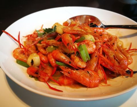 正好入住希尔顿酒店,看到钱湖阁中餐厅还是黑珍珠一钻,当天中午到达酒店后直奔餐厅,幸好雨天客人不多,没预约直接入座景观位啦。 |东钱湖河虾^168,简单的做法也能吃的出河虾肉质细腻有弹性。 |石锅海味小土豆^68,备注了不要辣,石锅底部比较油,味道还不错。 |娃娃菜干炒粉丝^78,量很多,配料丰富。 |石锅龙虾汤菜泡饭^48一位,小小的一碗,鲜美极了。 |杨枝甘露配绿豆糕^38,毕竟是五星酒店,这样的价格实惠很多,据说这里的杨枝甘露是大厨特调,反正我们是不知道,只知道这个味道实在是赞,虽然量少,但是口感滑爽味香浓郁,饭后来个甜品幸福满满。 即便只有黑珍珠一钻的中餐厅,还是很值得光顾的。