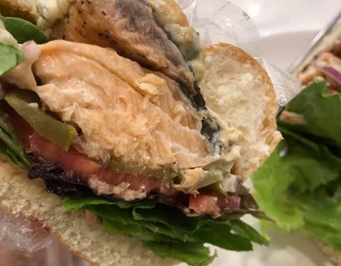 就在万象城五楼冰场的对面,分成外卖和堂食两部分。外卖只有烘焙这部分,而堂食则非常丰富,意面,大汉堡,三明治,牛排,沙拉都有。而且味道都不错,价格偏贵。