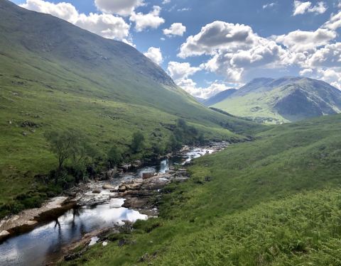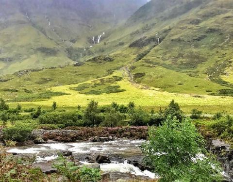 格伦科峡谷是苏格兰著名的旅游胜地,但是可能因为峡谷的面积太大了,也没有看到太多的游客吧,环境非常的漂亮,里面有很多的花草和溪流。