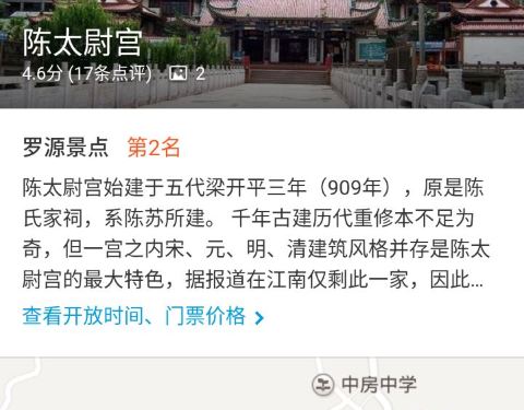 糅合五代、宋、明、清建筑之艺术的江南文物瑰宝陈太尉宫,系全国文物保护单位,位于中房乡乾溪村,原为陈氏宗祠,始建于五代后梁开平三年(909年),建造者为由河南固始入闽之陈苏。经历代扩(重)建,宫内占地面...