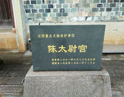 糅合五代、宋、明、清建筑之艺术的江南文物瑰宝陈太尉宫,系全国文物保护单位,位于中房乡乾溪村,原为陈氏宗祠,始建于五代后梁开平三年(909年),建造者为由河南固始入闽之陈苏。经历代扩(重)建,宫内占地面积1155平方米,现存建筑包括正殿、配殿、前殿三部分,皆重檐歇山式屋顶。正殿台基高1.2米,通面阔15.5米,通进深25.43米,面积394.17平方米,立柱28根(周长1.16-1.19米)。其中明间主柱皆用柱头科头拱,屋面结构通过其过渡到柱顶;明间上方皆藻井。左右配殿分别建于明、清,前殿建戏台,系清代建筑。陈太尉宫各部分分别展现了五代、宋、明、清建筑艺术与风格,在建筑史上很有研究价值陈太尉宫2001年被列入第五批全国重点文物保护单位名单,它原是陈苏祠堂。陈苏,河南固始人,唐末隐居罗源曹峰,教民农桑、礼教,死后被遵为神,封太尉。后陈苏祠堂改名为神宫,称陈太尉宫,经元、明、清三代扩建成3间殿堂,又续戏台、宫门,均是穿斗式构架。一宫之内,宋、元、明、清建筑并存,融汇组合一体,被文物专家誉为“古代建筑博物馆”。陈太尉宫座落于罗源县中房镇乾溪村,始建于宋代,木结构,单开间,占地面积一千一百一十五平方米,由正殿、配殿、戏台三个部分组成。正殿建筑面积近四百平方米,有二十八根立柱,为鼓圆形状,整个建筑未用一根钉子,为“江南瑰宝”。