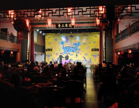 个人觉得不值得 1、太冷 有图为证 大家都穿着羽绒服不好脱下 2、 琴书,京韵打鼓仅仅是有位阿姨在唱,然后音响配乐。 3、买的120小桌票,说是有热茶水,结果没有,太冷了~~ 4、也就冲着名声,不划算!!