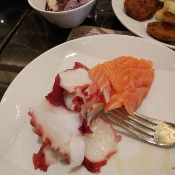 - ...餐和午餐更换时间,所以迟了几分钟才能拿东西吃,不过东西还挺多的,最好吃是蟹钳和刺身和甜品和水果