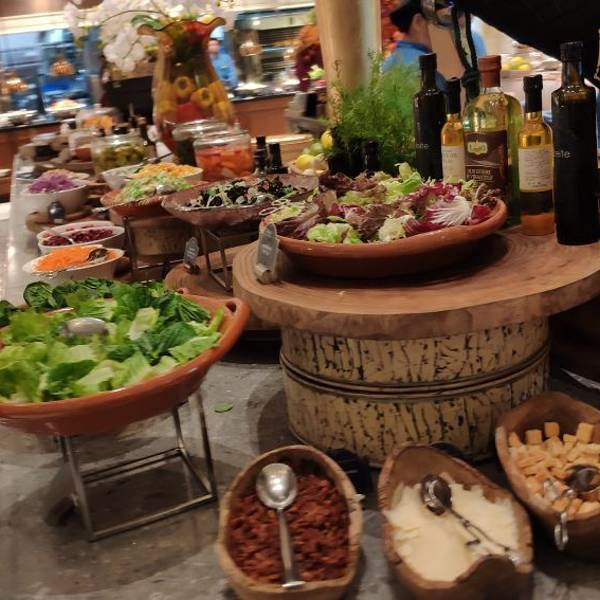 我去那天可能是台风天,没什么人!可以提早入座,但是刚好是早餐和午餐更换时间,所以迟了几分钟才能拿东西吃,不过东西还挺多的,最好吃是蟹钳和刺身和甜品和水果!听说水果是进口的,绿色的哈密瓜超级甜超好次...我去那天可能是台风天,没什么人!可以提早入座,但是刚好是早餐和午餐更换时间,所以迟了几分钟才能拿东西吃,不过东西还挺多的,最好吃是蟹钳和刺身和甜品和水果!听说水果是进口的,绿色的哈密瓜超级甜超好次!再过两个月再去吃!而且没的菜式会及时补上,不过吃不到!所以值得去吃!