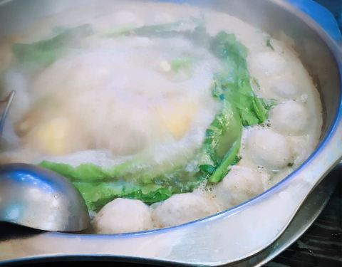 牛肉丸很弹很劲道,店铺灯是欧式的,等我想拍照的时候已经吃完了,晕