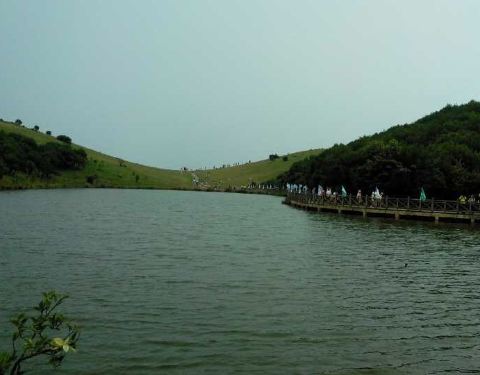 云顶天池 云顶景区平均海拔1000米以上,不用上西藏,你也能体验难得的高山之旅。 云顶有一处百亩草原,草原中央有处万年火山天池,景致优美,可用于露营。在万亩高山草甸中点缀着无数的红杜鹃,非常好看