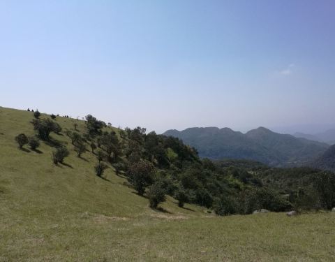 环境好,空气好,草场大,视野开阔。可放风筝,拍照。有很多杜鹃花,草地上有许多蓝色小花。可看远处的梯田,四周群山环绕,很美。