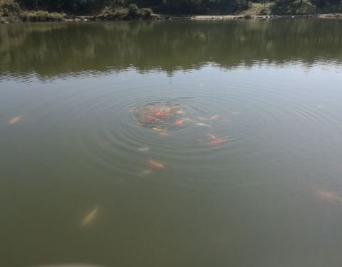 云顶山上有天池风景区还是挺漂亮的,天池水也是干净的,天池边是青青的草原,有亭子还可以在哪喂彩鲤鱼的,天池是云顶的最美的风景线