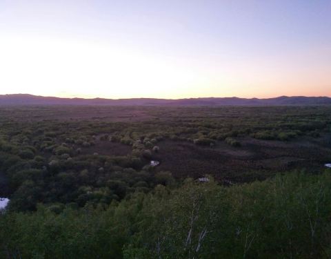 黑山头的迷人日落阳光就像魔法棒,点亮了天色,天空再把这边的河流染成蓝色。落日余晖下,树木裹上了...